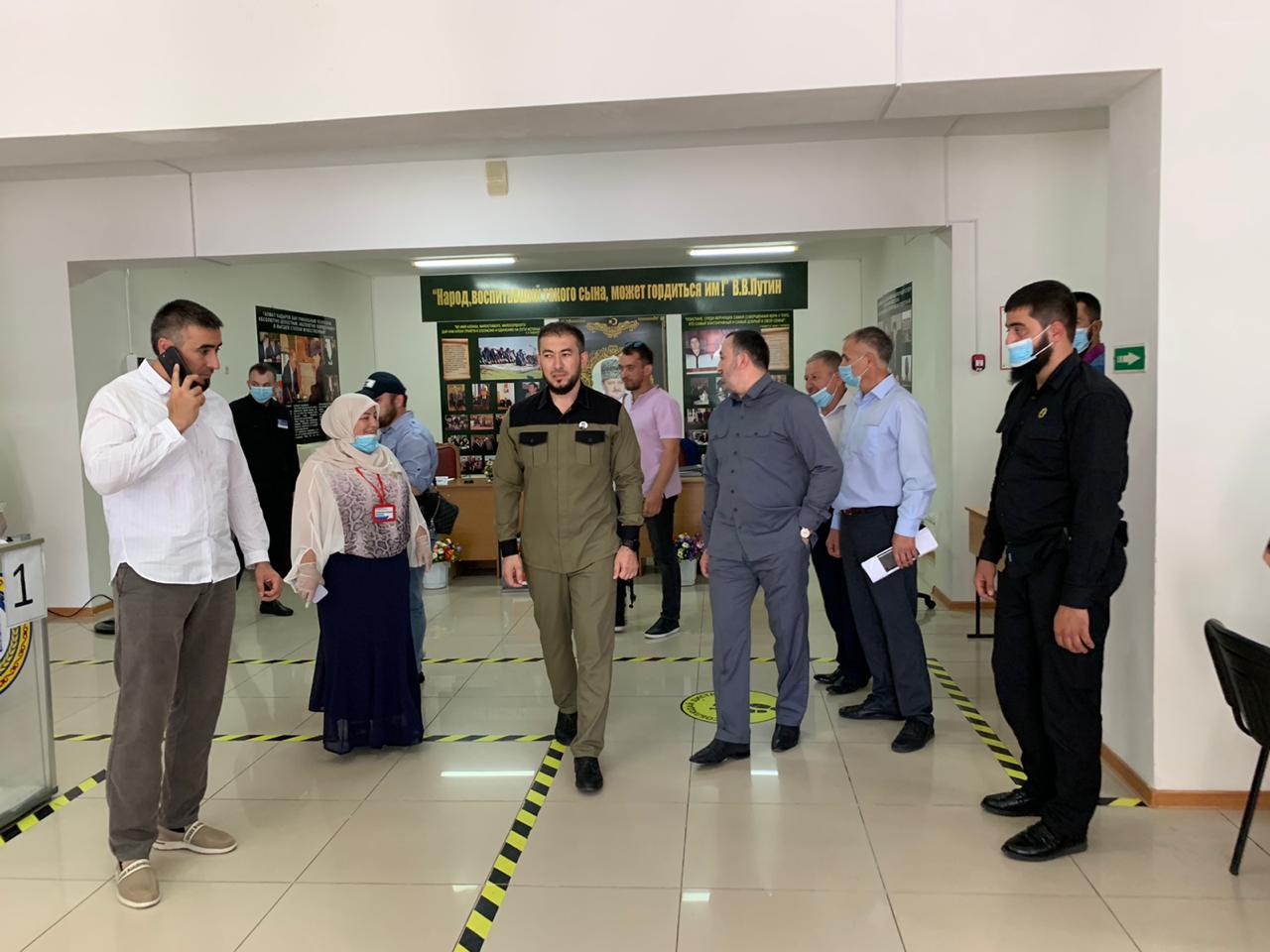 12.07.2020Председатель Избирательной комиссии Чеченской Республики Умар Байханов в сопровождении исполняющего обязанности мэра города Аргуна Илеса Масаева и председателя ТИК г.Аргун Руслана Сабралиева посетил избирательный участок №7 .