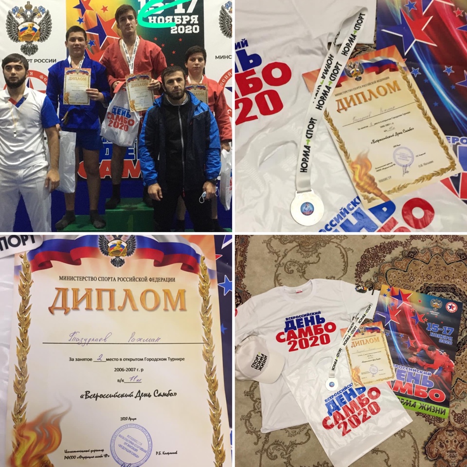 Ученик 8 «г» класса Тозуркаев Рахман занял 2-е место в открытом Городском Турнире,2006-2007 г.р в весовой категории 71кг., приуроченный празднованию «Всероссийского Дня Самбо».