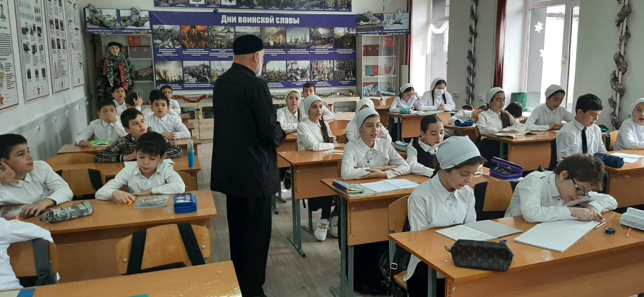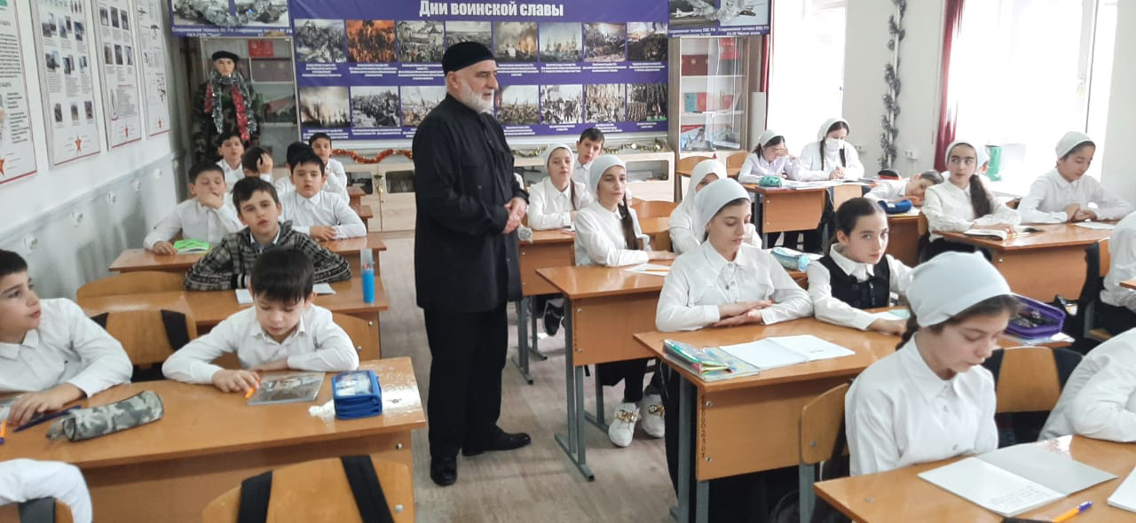 В рамках реализации плана ДНВ и РПП на 2021-2022 учебный год. 14-19.03.2022 года педагогом по ДНВ и РПП Медиловым С-А. Ш. с обучающимися 1-9 классов проведены беседы на тему «Ислам о соблюдении права и порядка». Медилов С-А.Ш. в своем выступлении сказал, что Мусульманские общества пользовались политическими и религиозными свободами тогда, когда в остальных частях света царили политический гнёт и социальная несправедливость. Полноценная жизнь немыслима без свободы, и поскольку отсутствие последней означает духовную смерть, ислам признаёт за человеком гражданские и политические права: право на жизнь и безопасность, на свободу перемещения, на равенство и недопущение дискриминации, на справедливость и защиту чести, на участие в управлении делами общества, на свободу мысли и слова, на свободу вероисповедания, на образование и социальное обеспечение, на частную жизнь, создание семьи и т. д.