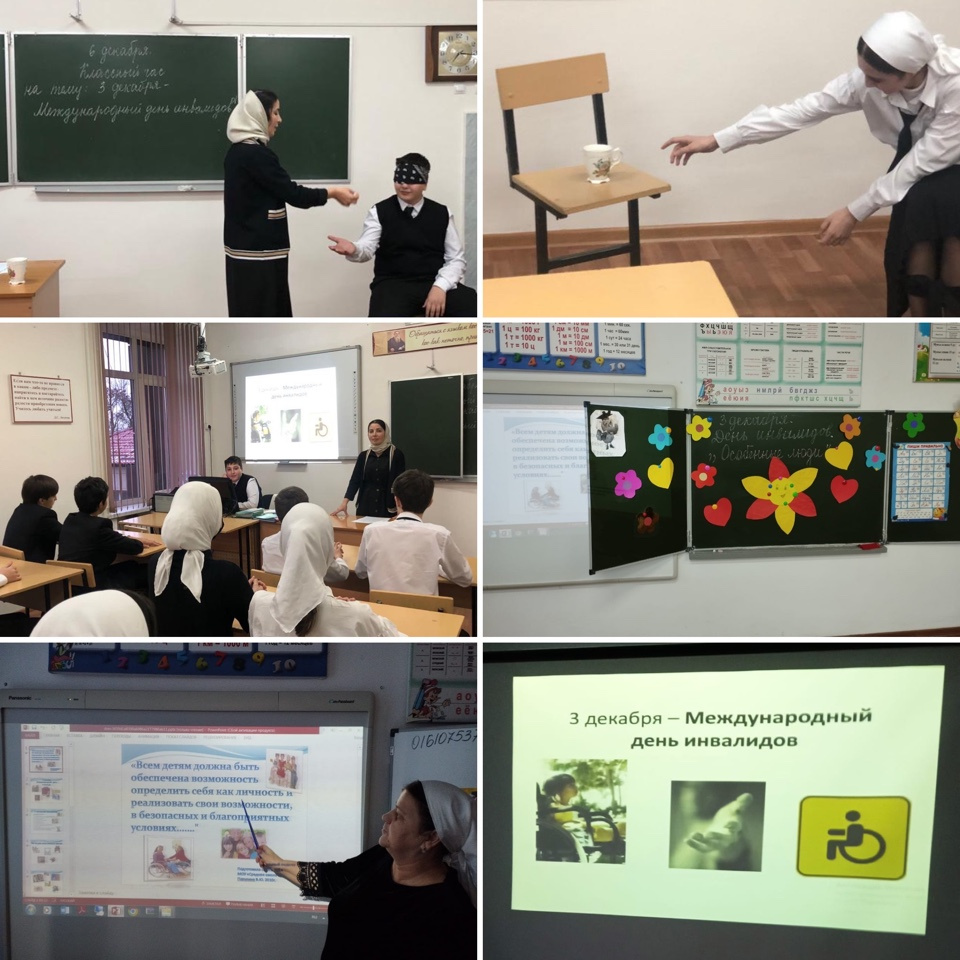 06.12.2022В целях формирования культуры позитивного, толерантного отношения в обществе к лицам с инвалидностью и ограниченными возможностями здоровья 6 декабря 2022г. в МБОУ "СОШ1" г.Аргуна имени Х.Х.Хататаева с обучающимися проведены Уроки доброты, приуроченные к Международному дню инвалидов.