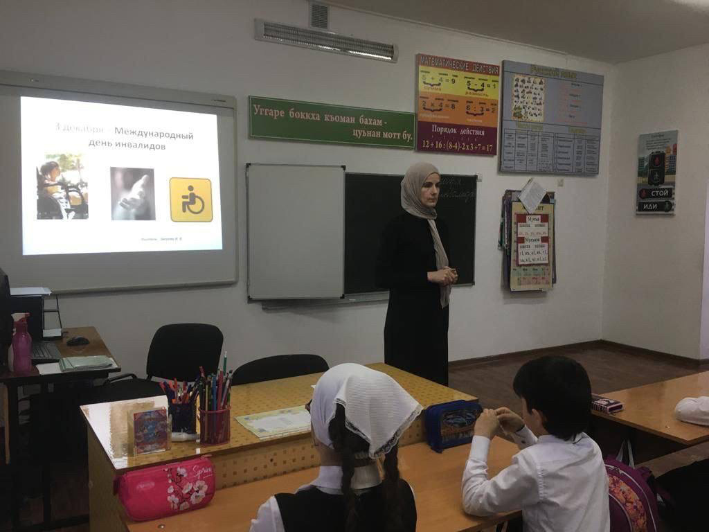 В МБОУ «СОШ 1» в рамках Международного дня инвалида, проведены классные часы на тему: «Иди дорогою добра» Цель мероприятия: формировать толерантное отношение к людям с ограниченными возможностями здоровья. #сош1аргун #деньинвалида