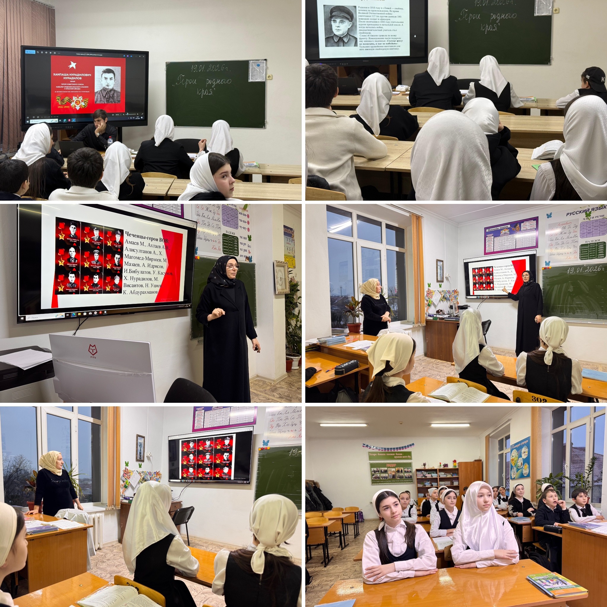 В МБОУ «СОШ1» г. Аргун проведены беседы по ознакомлению учащихся с подвигами земляков в рамках реализации программы «Проведение ознакомительных работ и памятно- мемориальных мероприятий…» на 2026-2030 годы. Беседы проводились в интерактивном формате с использованием мультимедийных презентаций, архивных документов и предметов, найденных в ходе поисковых экспедиций.